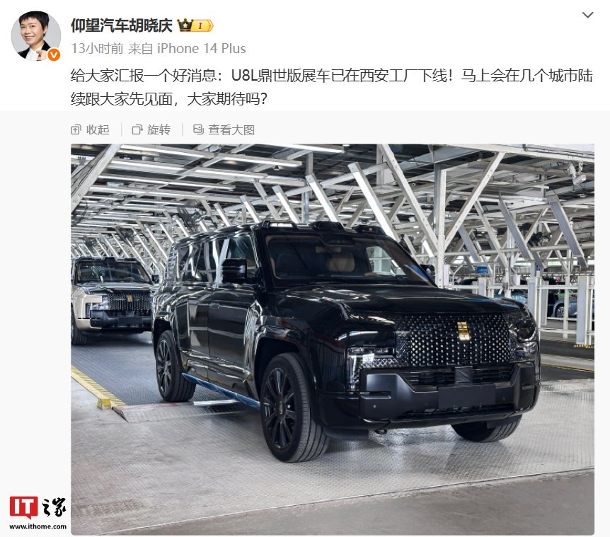 比亚迪仰望 U8L 鼎世版展车已在西安工厂下线,新车下半年上市